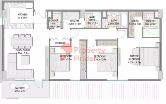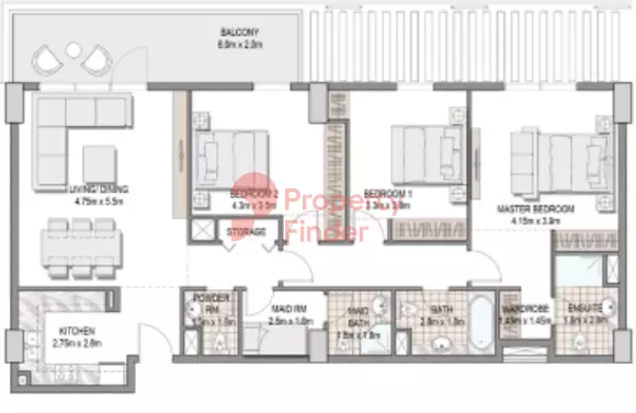 – 1-bedroom apartments: Their sizes range from 605 sqft to 895 sqft, offering a comfortable and luxurious abode perfect for singles or young couples.