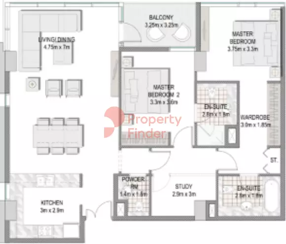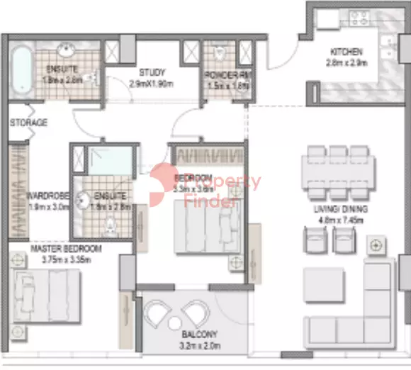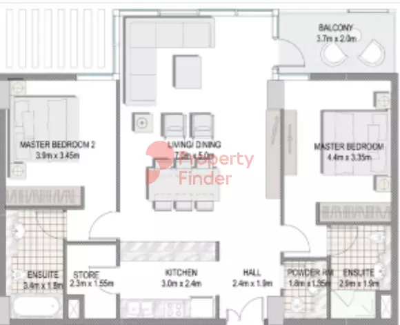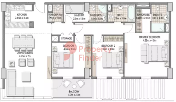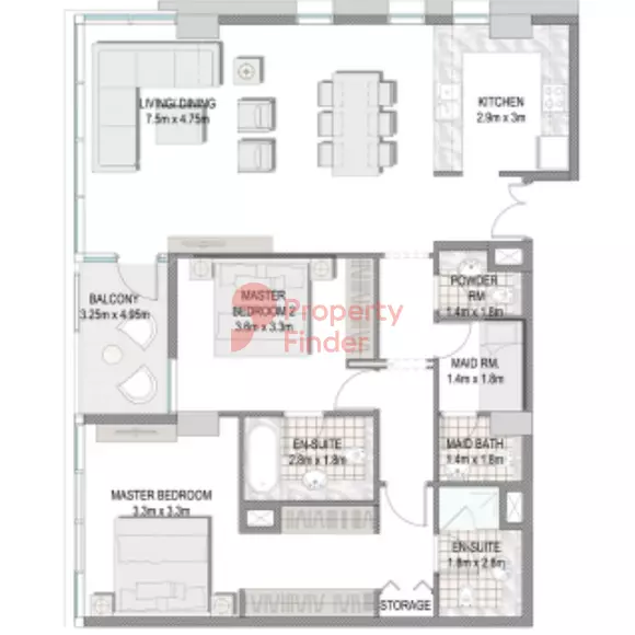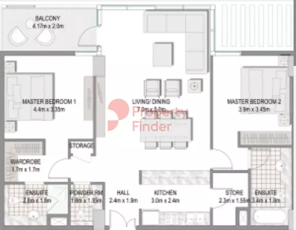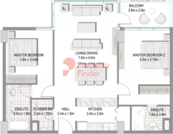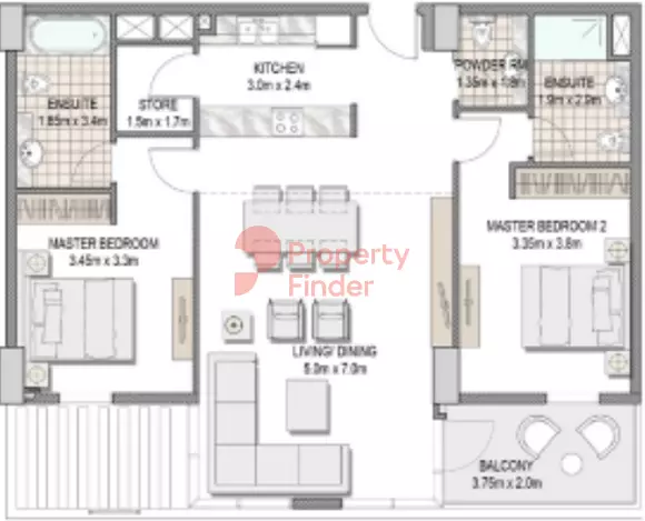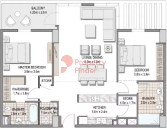 – 2-bedroom apartments: Their size ranges from 1,028 sqft to 1,365 sqft.
