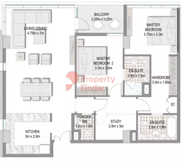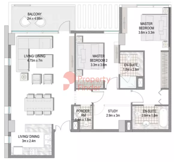 Type-2 end unit variation 2b | 1310 | Floor Plan Download |