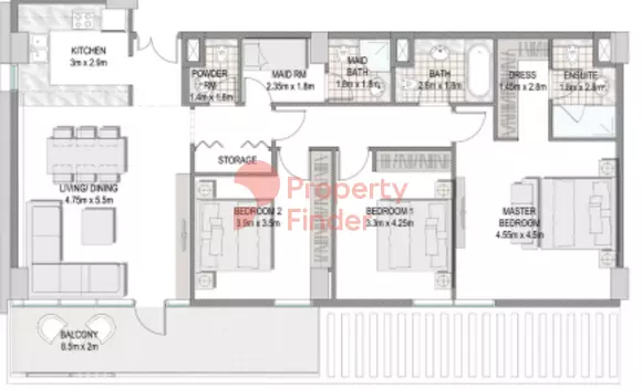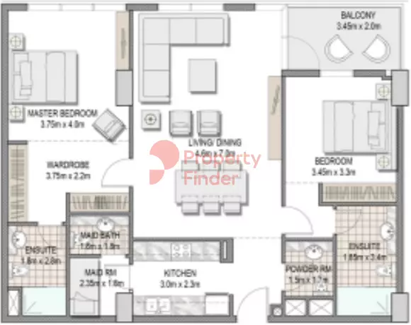 Type-2 end unit variation 2a | 1365 | Floor Plan Download |
